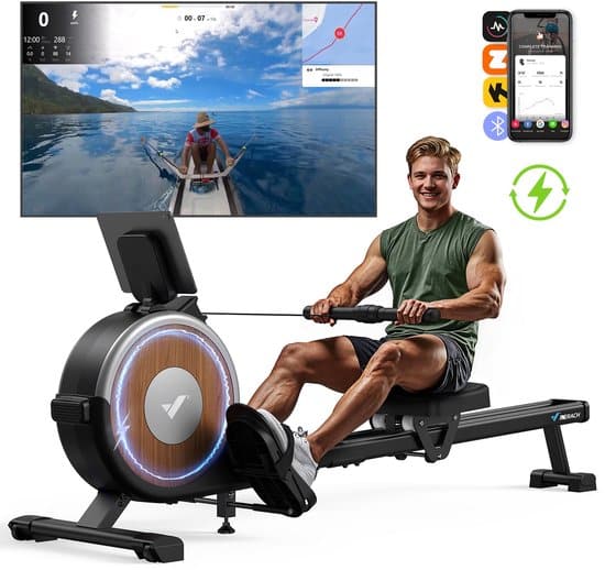 MERACH Elektronische roeitrainers met 16 weerstandsniveaus – Zelfopwekking roeimachine – Stabiel dubbelrails ontwerp – LCD-display – 90% voorgemonteerd – Tablet-houder – MERACH & Kinomap app – Verticale opslag – Belastbaar tot 158 kg – Stille workout
